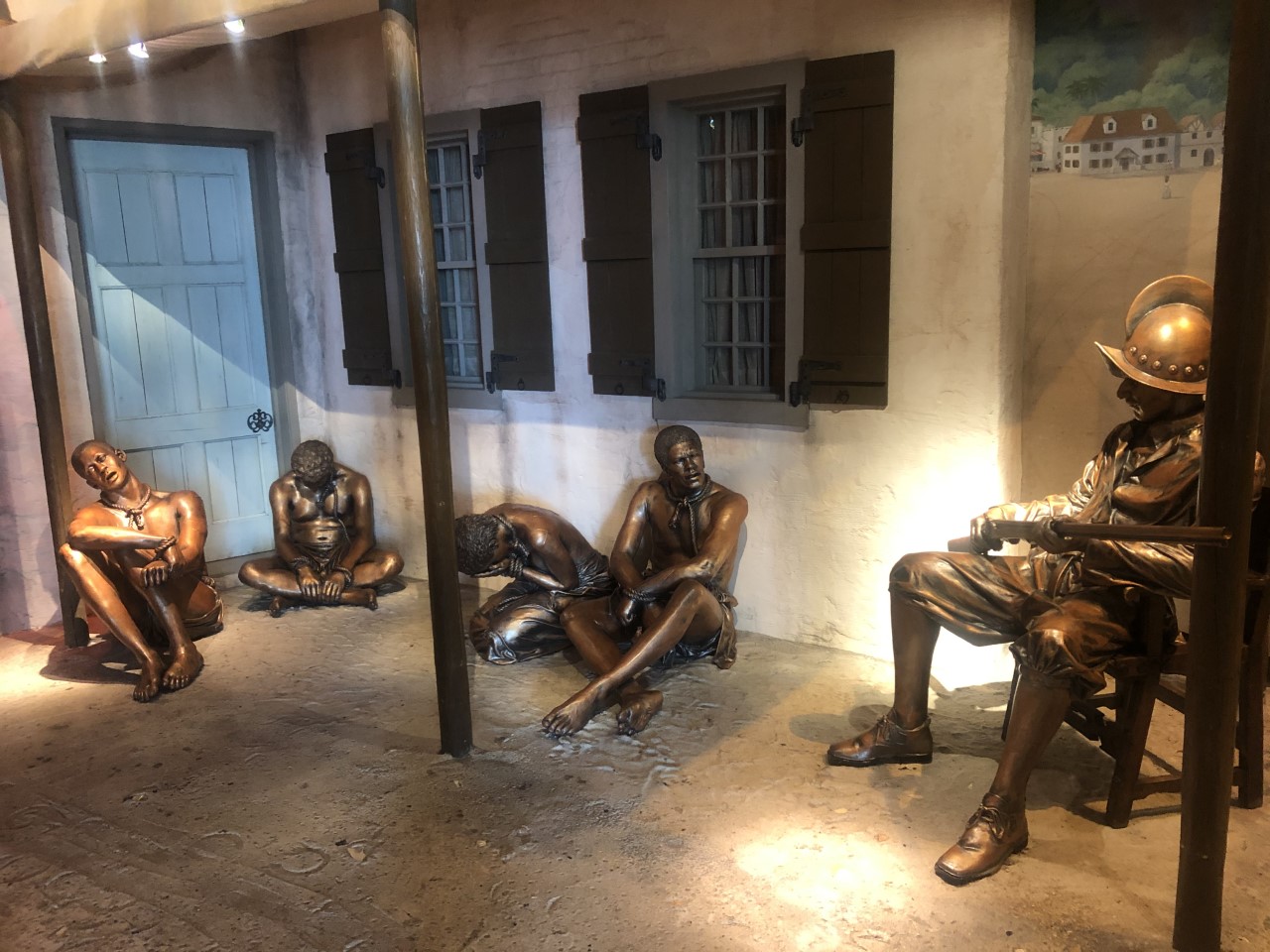 This specific exhibit made me think about all of the topics above, and really brought the things I have learned this semester full circle. The picture below, which is from the exhibit, provides a visual aspect to the points made above. Although it does not represent every specific situation described, the image depicts to me the negative impacts of slavery. The expressions and body language displayed along with the poor conditions are a visual representation of the limits placed on enslaved people and the horrific treatment they endured.